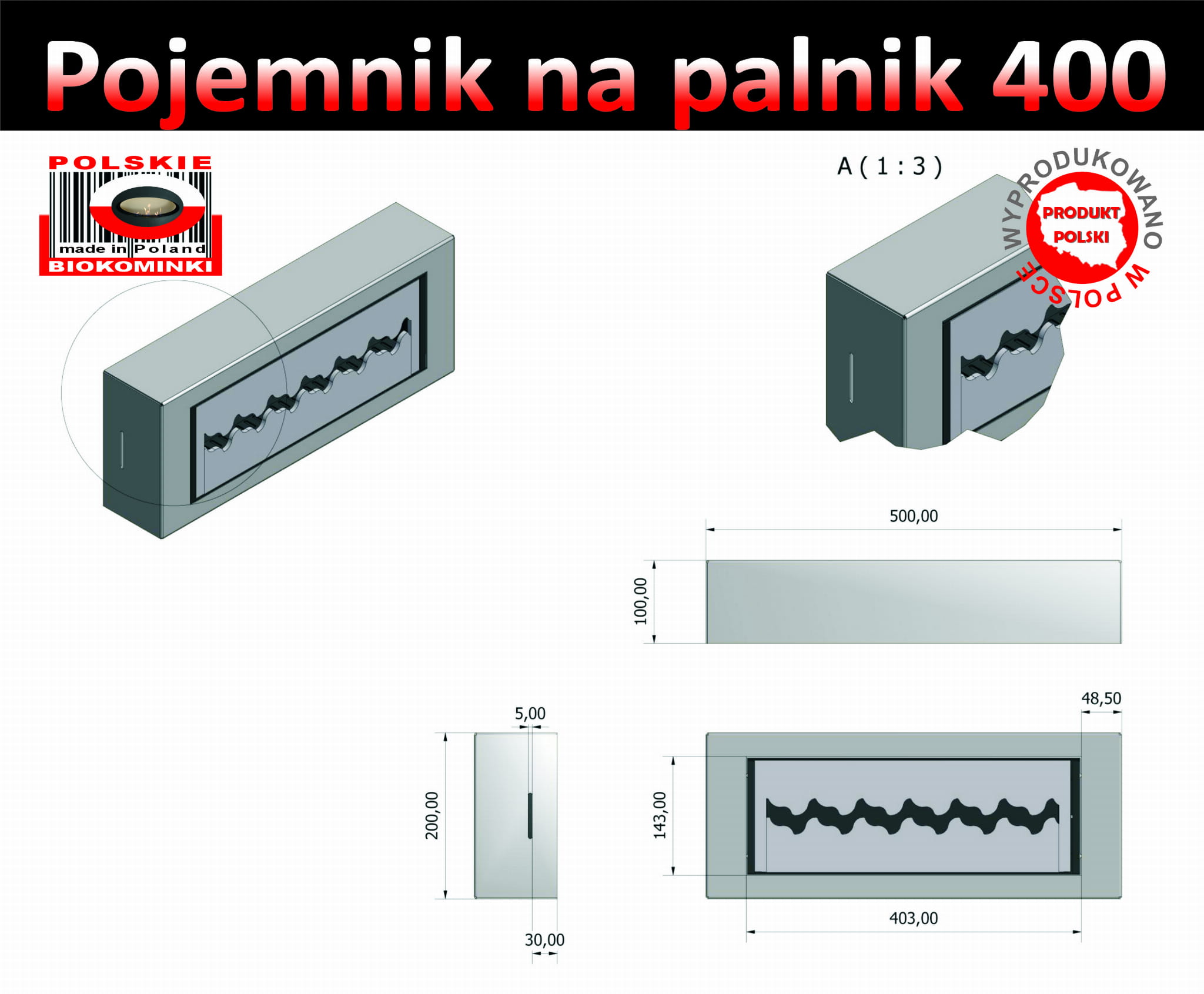 Pojemnik na komplet palnikowy dedykowany kreatywnym Klientom, którzy według własnego pomysłu wykonają zabudowę palnika w materiałach łatwopalnych lub o powierzchniach powleczonych materiałami lakierniczymi.